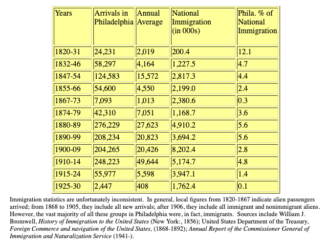 Immigration into Pennsylvania: A Focus on the Port of Philadelphia